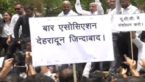 मंगलवार को देहरादून में वकीलों का गुस्सा सड़कों पर फूट पड़ा। ऑनलाइन रजिस्ट्री प्रणाली के खिलाफ बार एसोसिएशन के नेतृत्व में वकीलों ने सचिवालय का घेराव करने की कोशिश की है। इस विरोध प्रदर्शन का असर पूरे प्रदेश में दिखा, जहां न्यायिक कार्य पूरी तरह ठप रही। इससे पहले शुक्रवार को सभी अधिवक्ता हड़ताल पर रहे थे। हालांकि 6 जून को हड़ताल सब रजिस्ट्रार कार्यालयों, एडीएम और एसडीएम कार्यालयों तक सीमित रही।