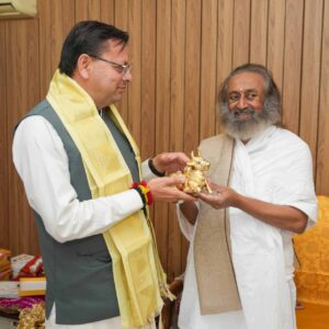 सीएम धामी आध्यात्मिक गुरू श्री श्री रविशंकर से मिले