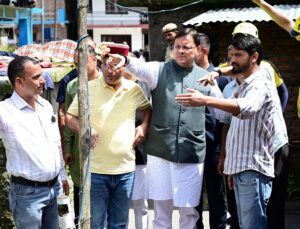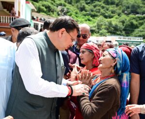 आपदा प्रभावितों से मिलते हुए सीएम धामी