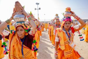 ज्योति कलश यात्रा के दौरान देवभूमि उत्तराखण्ड की अद्भुत एवं अलौकिक झांकी ने उपस्थित श्रद्धालुओं का मन मोह लिया। हिमालयी संस्कृति, लोकआस्था और आध्यात्मिक गरिमा से सजी इस झांकी ने उत्तराखण्ड की देवतुल्य परम्पराओं, लोकसंस्कृति और आध्यात्मिक चेतना का सजीव दर्शन कराया। जैसे ही यह झांकी यात्रा में आगे बढ़ी, श्रद्धालु भावविभोर होकर नमन करने लगे और पूरा वातावरण जयकारों से गूंज उठा। ज्योति कलश यात्रा केवल आस्था की यात्रा ही नहीं, बल्कि भारत की सांस्कृतिक एकात्मता का जीवंत महाकाव्य बनकर उभरी। यात्रा में सम्मिलित छत्तीसगढ़ के आदिवासी लोकनृत्य ने अपनी सहजता, ऊर्जा और प्रकृति से जुड़ी जीवनशैली का भावपूर्ण प्रदर्शन किया। ढोल-मांदर की गूंज के साथ थिरकते कदमों ने जनजातीय संस्कृति की जीवंतता को साकार कर दिया।