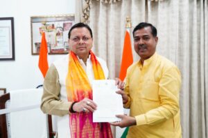 मुख्यमंत्री श्री पुष्कर सिंह धामी से आज मुख्यमंत्री आवास में विधायक श्री विनोद चमोली ,