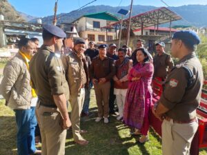 *पुलिस अधीक्षक उत्तरकाशी श्रीमती कमलेश उपाध्याय* द्वारा यमुना वैली के बडकोट में पहुंचकर पुलिस द्वारा चलाए जा रहे विशेष सत्यापन अभियान की समीक्षा करते हुये बाहरी प्रान्तों से जनपद में निवासरत व्यक्तियों, किरायेदार, घरेलू नौकर, मजदूर, फड़-फेरी व रेडी-ठेली लगाने वाले के शत्-प्रतिशत पुलिस सत्यापन करने के सम्बन्ध में जरुरी निर्देश व हिदायतें दी गयी। तत्पश्चात उनके द्वारा *मां यमुना जी के शीतकालीन प्रवास खरसाली (खुशीमठ) पहुंचकर यमुनोत्री राष्ट्रीय राजमार्ग तथा शीतकालीन यात्रा व्यवस्थाओं का स्थलीय निरीक्षण कर जायजा लिया गया।* खरसाली में स्थित मां यमुना जी के मन्दिर में पूजा-अर्चना एवं दर्शन करने के उपरांत तीर्थ पुरोहितों के साथ शीतकालीन यात्रा एवं आगामी चारधाम यात्रा-2026 के सम्बन्ध में चर्चा-परिचर्चा तथा पूर्व की यात्राओं का फीडबैक लिया गया। शीतकालीन यात्रा तथा मन्दिर सुरक्षा को लेकर पुलिस अधिकारियों को जरुरी निर्देश दिये गये।